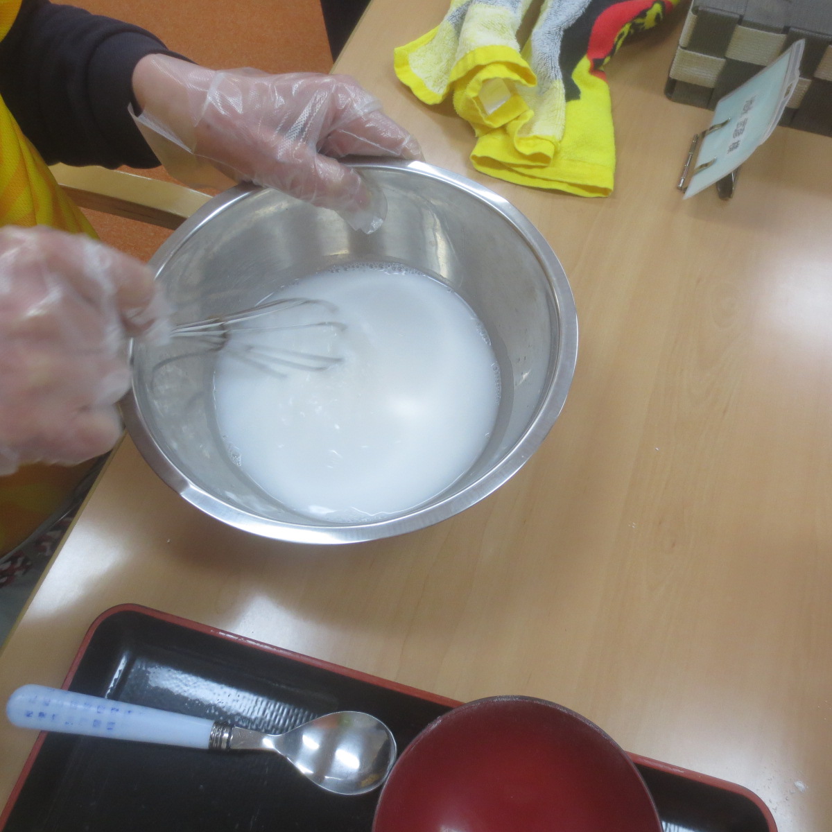 白玉粉に水を少し入れて、溶かします