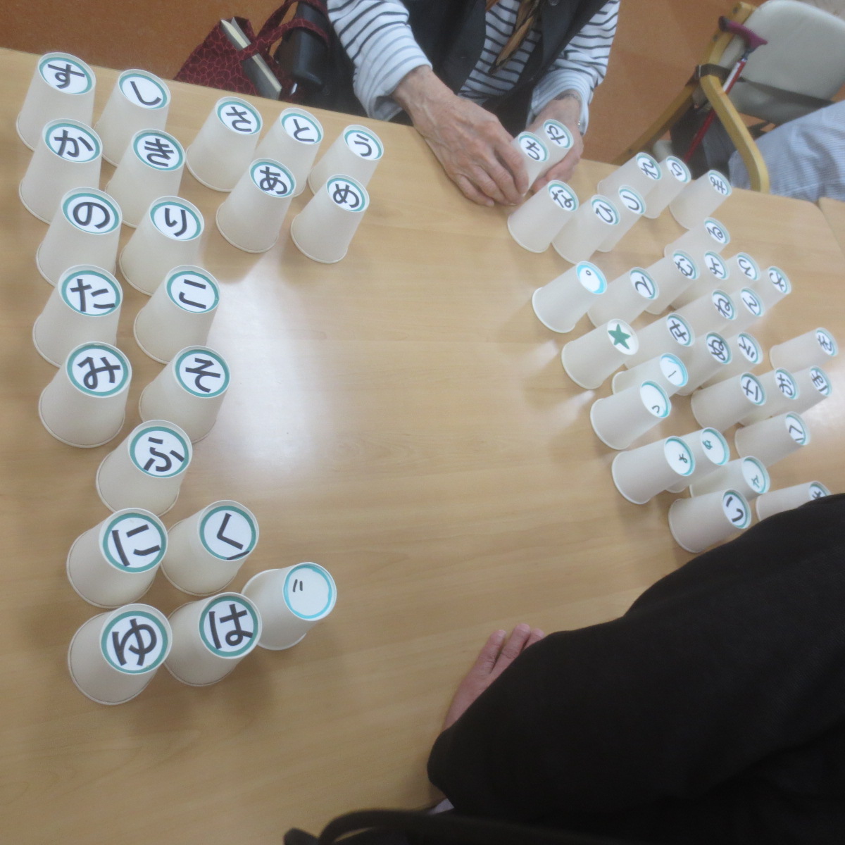 このようにコップで文字を作って行くゲームです。