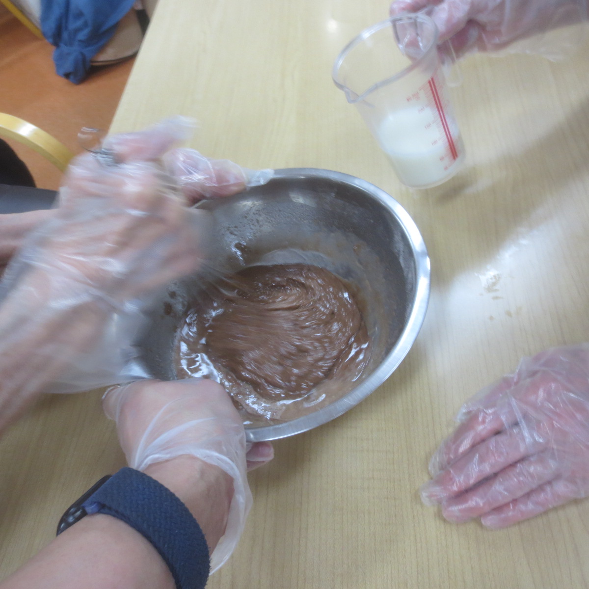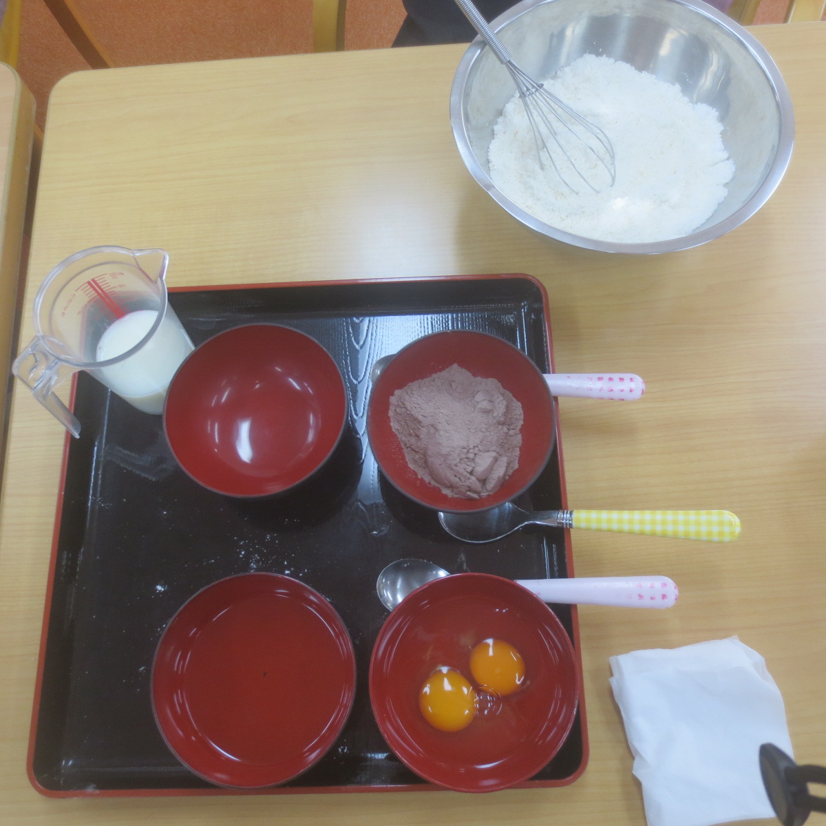 2:ホットケーキミックスに砂糖とココアを入れて混ぜます