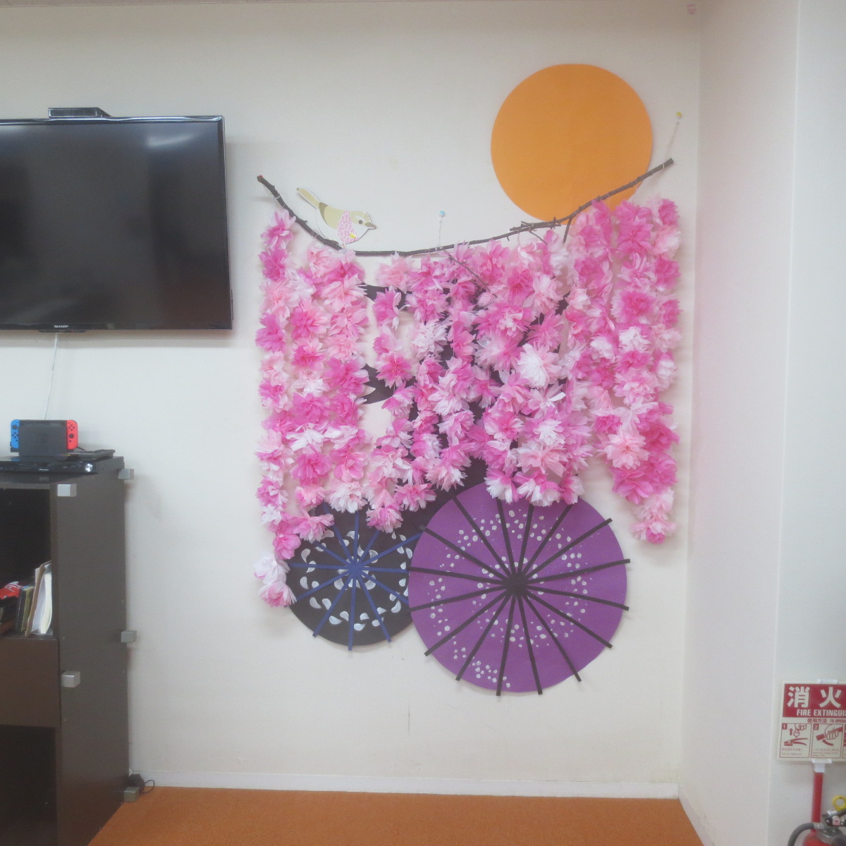 この前の制作レクで皆様に作った頂いた桜が咲きました。