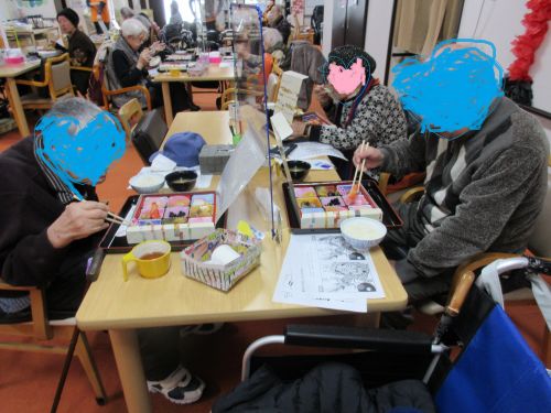お正月のおせち料理 2026/1/8 2026/1/8 デイサービス笑楽 門真 今年度元旦のおせち料理利用者様は喜び美味しいと言われて食べられておられました。 利用日とは関係なくたくさんの利用者様が来てくれました。 食べ終わられると利用者様より「美味しかったよ、また来年も 食べたい」と言われておりました。