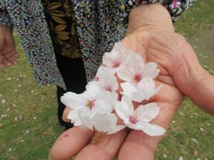 写真を撮る方もいれば、木から落ちた桜の花を拾って、お花見に参加できなかった方へのお土産として渡される方もいらっしゃいました。