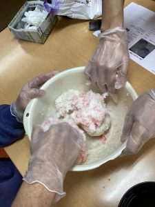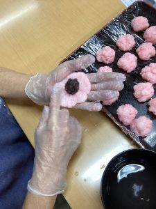 おやつレク~さくらもちづくり~~~(^^♪ 2026/3/21 2026/3/21 デイサービス笑楽 北伊丹 今週の北伊丹店はおやつレク週間~~~ 今回は色鮮やかな簡単さくらもちをつくっていただきました(^^♪ お米を半殺しにし、食用紅で色をつけ、片栗粉を混ぜて丸め、あんこを包めば出来上がり~~~!! 味も好評でした~みなさまも是非お試しくださいね~ 今週のブログはみなみが担当しました~~~~それではまた~~~(@^^)/~~~