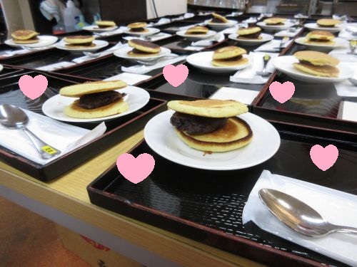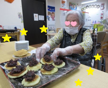 今月のおやつレクは『あんこたっぷりどら焼き』☺