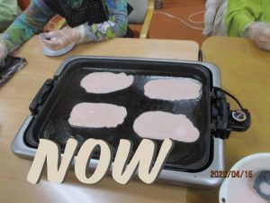白玉粉を入れているので、ホットプレートで焼いたら