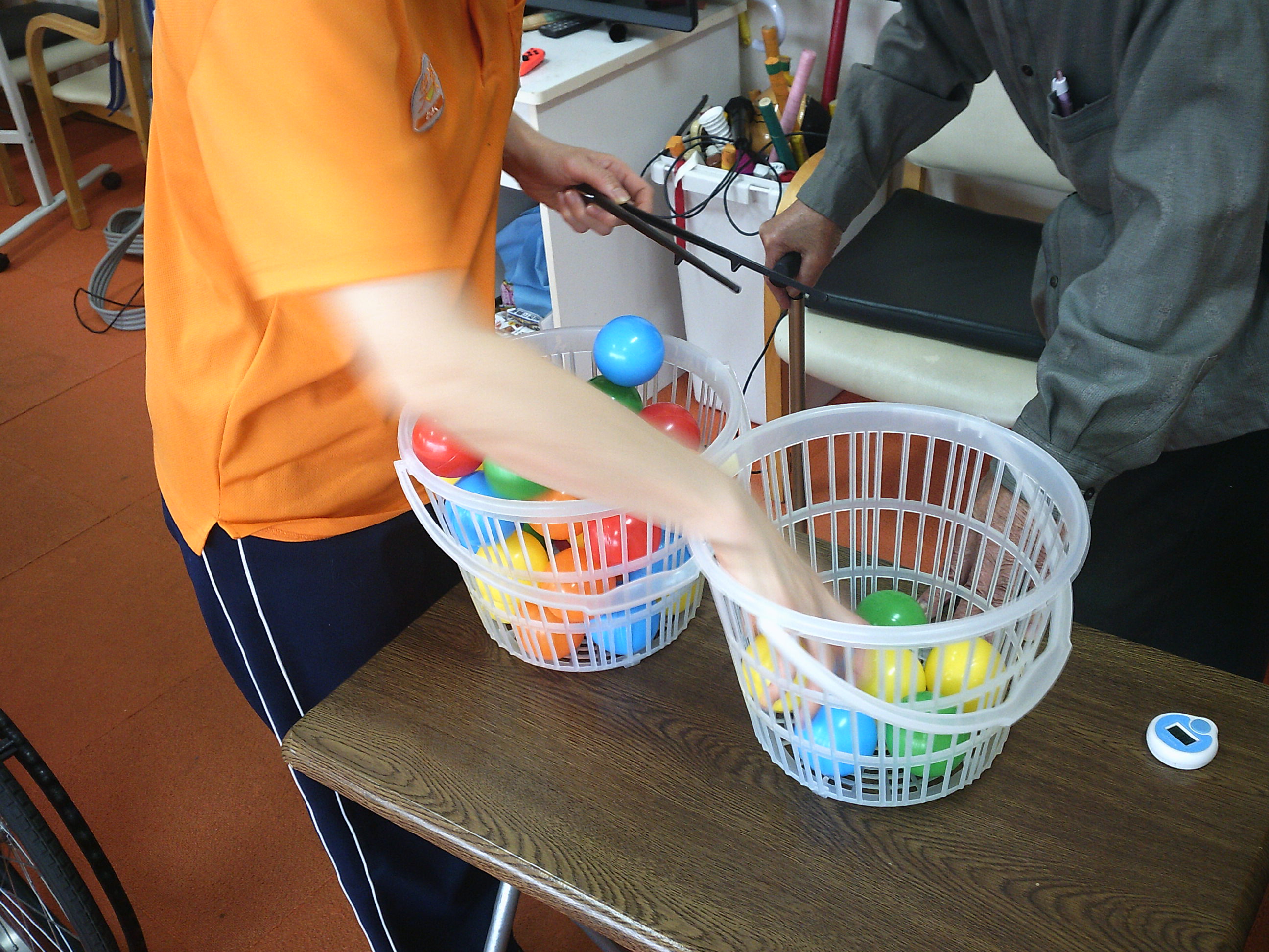 今回は掴みにくいハンドトングでボールをつまんで別のバケツに30秒以内に入れる流れで入れた個数で順位を決めるゲームをしています。