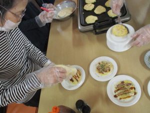 リアル!キャベツ太郎【お好み焼き】 2025/10/28 デイサービス笑楽 緑地公園 朝晩はもうすっかり寒くなり、日もだんだん短くなって来ましたね🌞 皆さま、寒くなると水分を摂るのを忘れがちですが、しっかり水分補給してくださいね🥤 さて、先々週はおやつレクでお好み焼きをしました!! 名前はリアル!キャベツ太郎です(⌒∇⌒) みなさん手際もよく、ひっくり返すのも上手にされていて、盛り付けも美味しそうにしてくれました! 久しぶりに食べたと喜んでいる方もいて笑顔が見れてよかったです(^▽^)/ 以上、緑地公園の古澤でした(⌒∇⌒)/