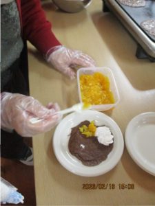 熱々だと上に乗せるクリームが溶けてしまうので、みんなでパタパタと仰いで冷まします💨