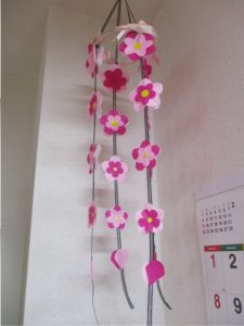 デイサービスのフロアー内にも、春を感じさせる作品がたくさんあるので、