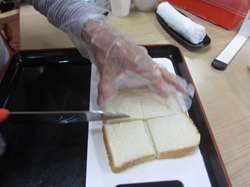 次に、食パン🍞を4等分に切りました。