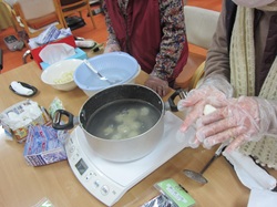 今月のおやつレク(白玉ぜんざい) 2026/1/22 2026/1/22 デイサービス笑楽 鶴見緑地 皆様、本格的な寒波で寒い日が続きますね。 そんな時は「ぜんざい」もいいですね。 今月のおやつレクは「白玉ぜんざい」を作りました。 まずは白玉粉と絹豆腐を混ぜて丸めます。 次に丸めた白玉団子を茹でます。 茹でた白玉団子を器に盛り付け、小豆をかけて出来上がりです。 ご利用者様、ほとんどの方から「美味しかった」と感想をいただきました。 また来年も寒い季節に白玉ぜんざいを作ってみたいと思いした。 今回は浅野が投稿致しました。