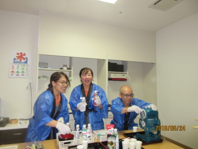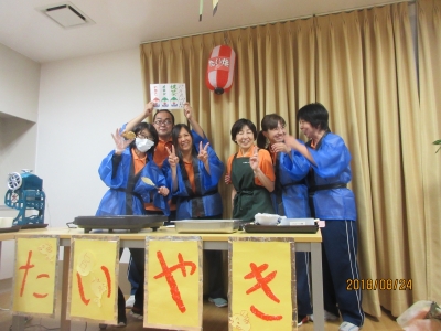 かき氷チームとたい焼きチームでハイ、チーズ!