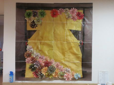 土台作りが完成すると、着物が綺麗に見えるよう菊の花を綺麗に飾り素敵な菊の着物が完成致しました😆😆❣